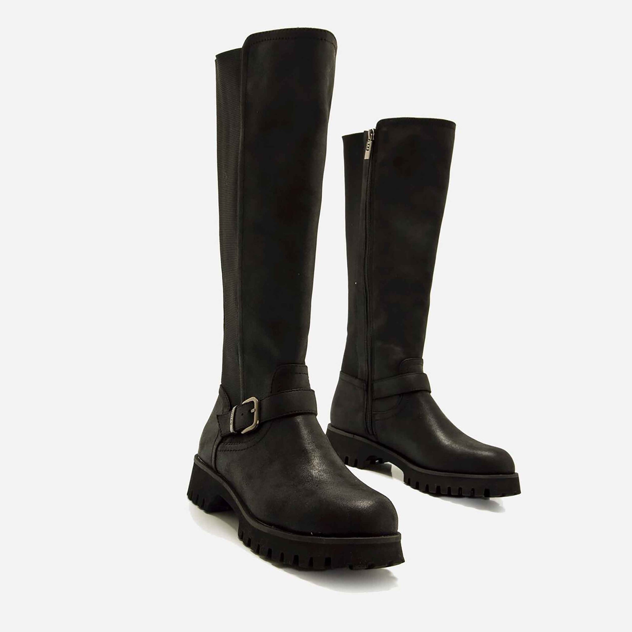 Bota alta Lenox mtng para mujer. Diseñada en color negro, destaca gracias a su detalle de hebilla en la parte inferior de la caña. Suela dentada para una pisada más cómoda.Cierre de cremallera en la parte interior de la caña. Un modelo perfecto para dar un toque diferente a tu look.