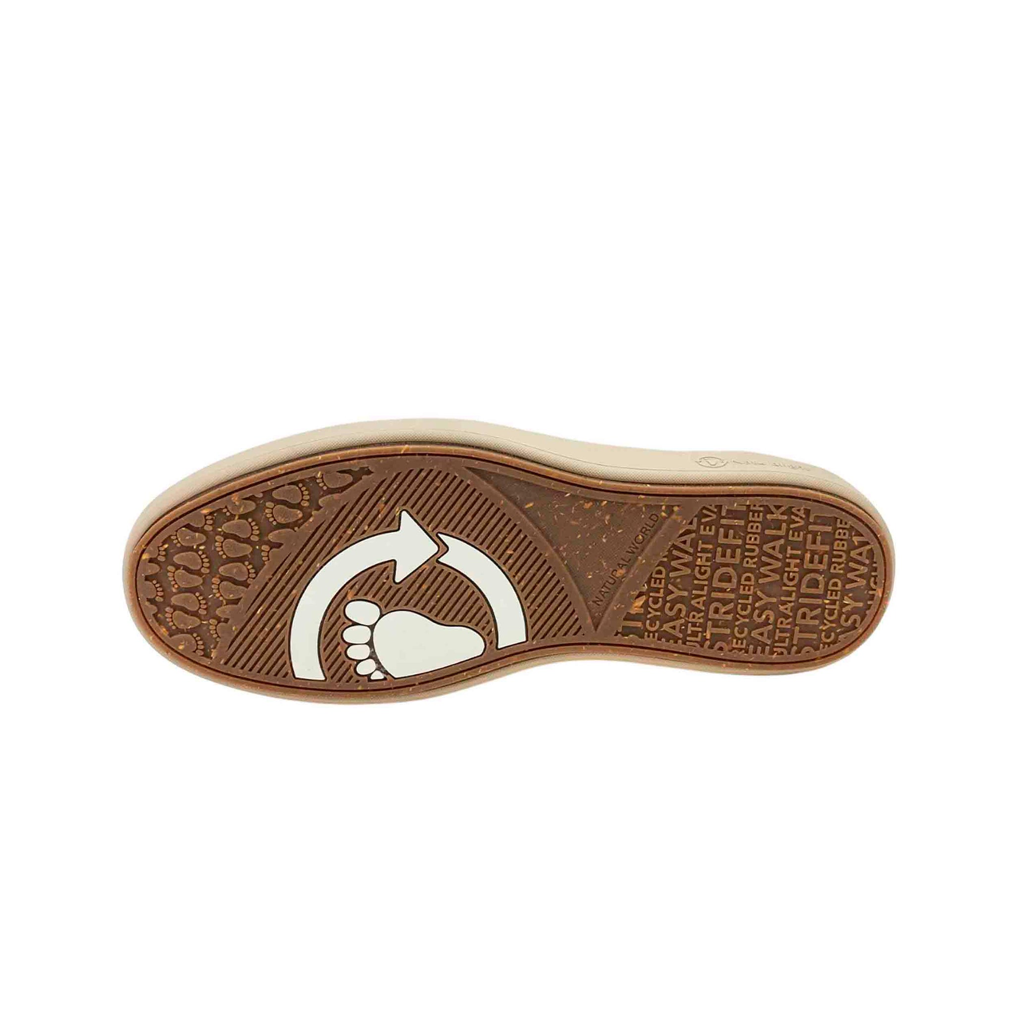 La suela combina una base de EVA ultraligera con un patín de goma antideslizante fabricado con virutas de madera reciclada, lo que ofrece amortiguación suave, ligereza y agarre seguro sobre superficies resbaladizas.