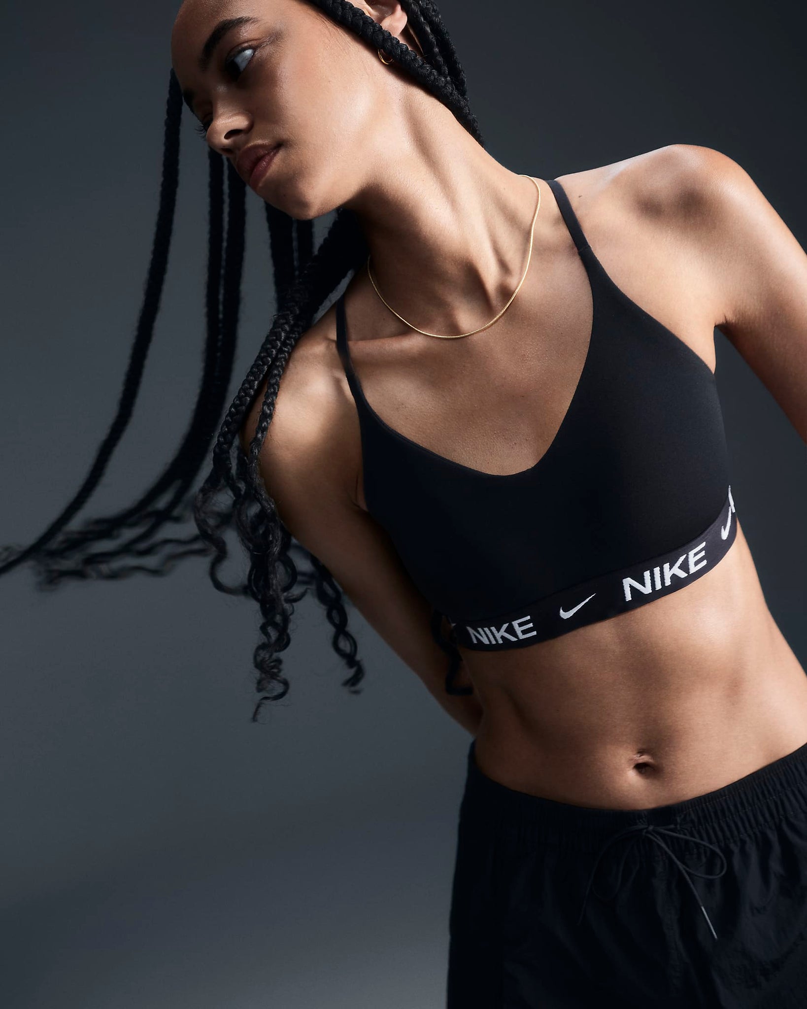 La tecnología Nike Dri-FIT integrada en el tejido capilariza el sudor de la piel, acelerando su evaporación y ayudando a mantener la transpirabilidad y la comodidad durante el uso. La banda en el pecho, suave y de jacquard, ofrece un ajuste ceñido en contacto con la piel sin pellizcos ni pliegues, garantizando una experiencia de uso agradable.