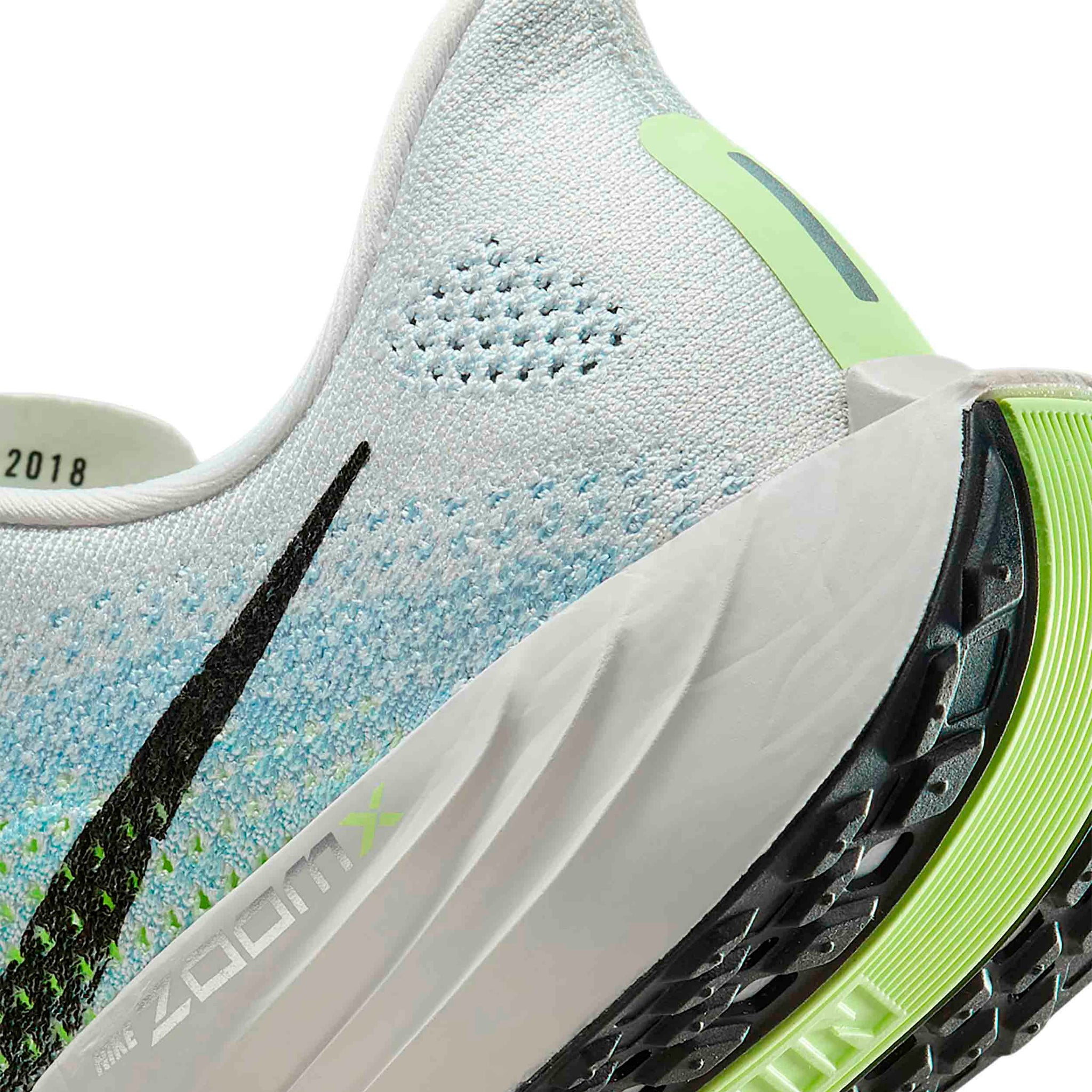 El upper Flyknit envuelve tu pie con ajuste tipo guante, integrando perforaciones zonales para mejorar la ventilación sin añadir peso. Una banda de sujeción en el mediopié estabiliza el ajuste, mientras los detalles reflectantes garantizan visibilidad nocturna.