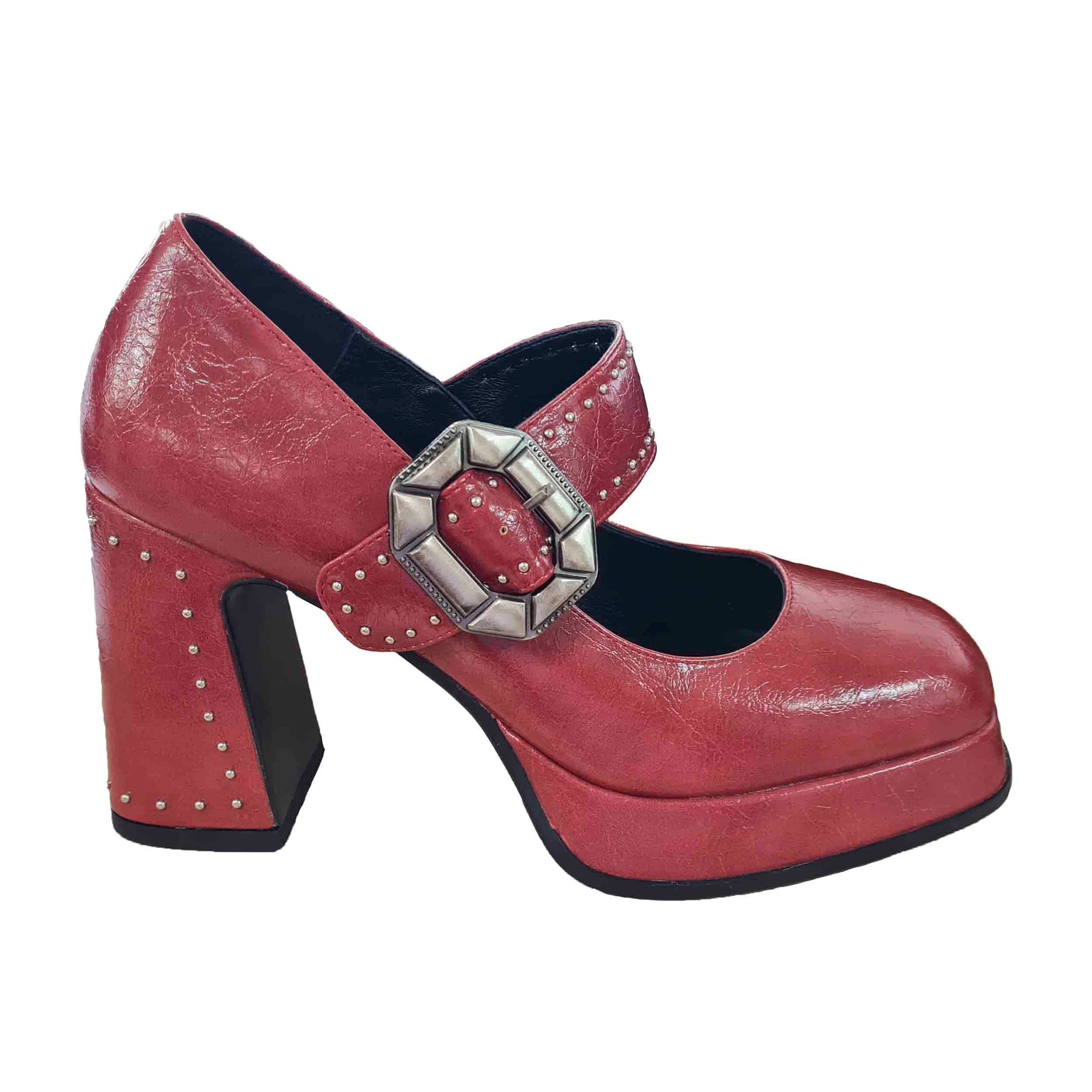 El modelo destaca por su original hebilla metálica XL con diseño geométrico, que decora la tira ancha superior y proporciona un ajuste seguro y personalizado. La plataforma delantera ofrece un extra de altura sin sacrificar confort, equilibrando la pisada y evitando fatiga, incluso en jornadas prolongadas. Los pequeños tachones metálicos que adornan el lateral del tacón aportan un aire rockero y vanguardista, ideal para combinar con faldas midi, pantalones culotte o incluso un vestido boho para contrastar estilos.