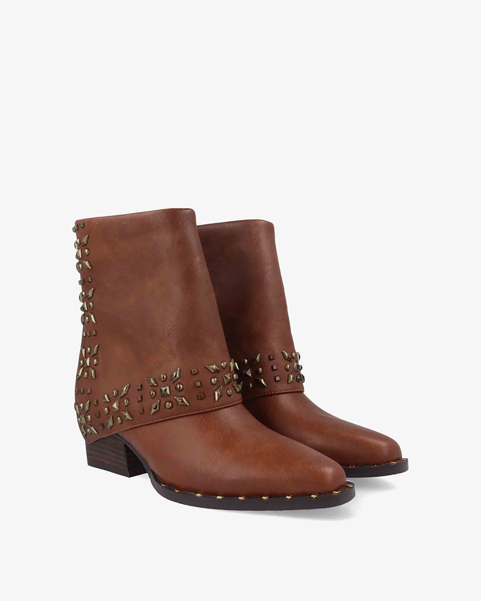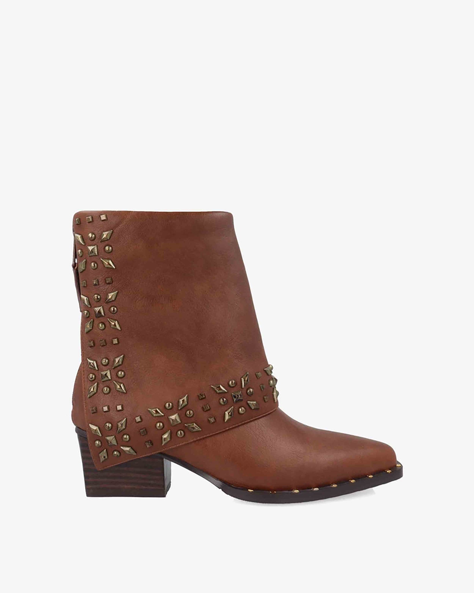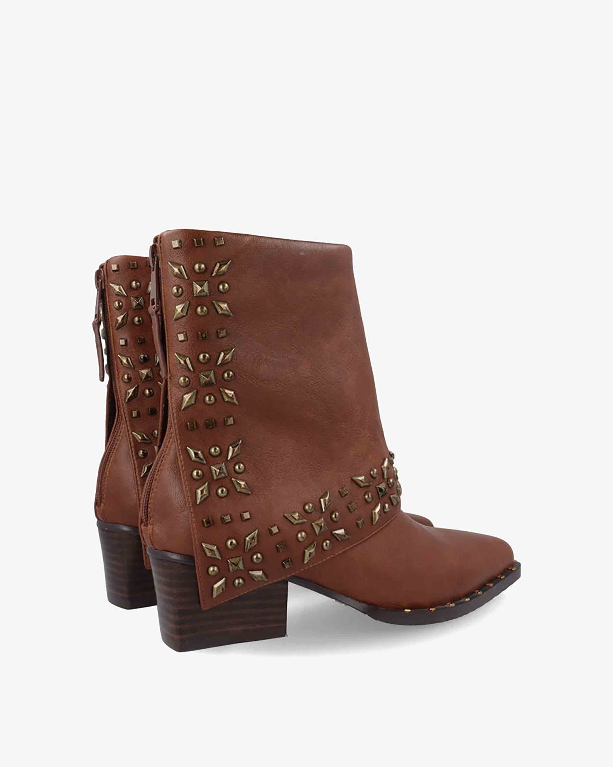 Botín con caña plegada y remaches Noa Harmon. LIL EMILIA, con su tacón reducido y cerco con remaches, va a convertirse en tu bestie. Tiene cremallera trasera para más comodidad.