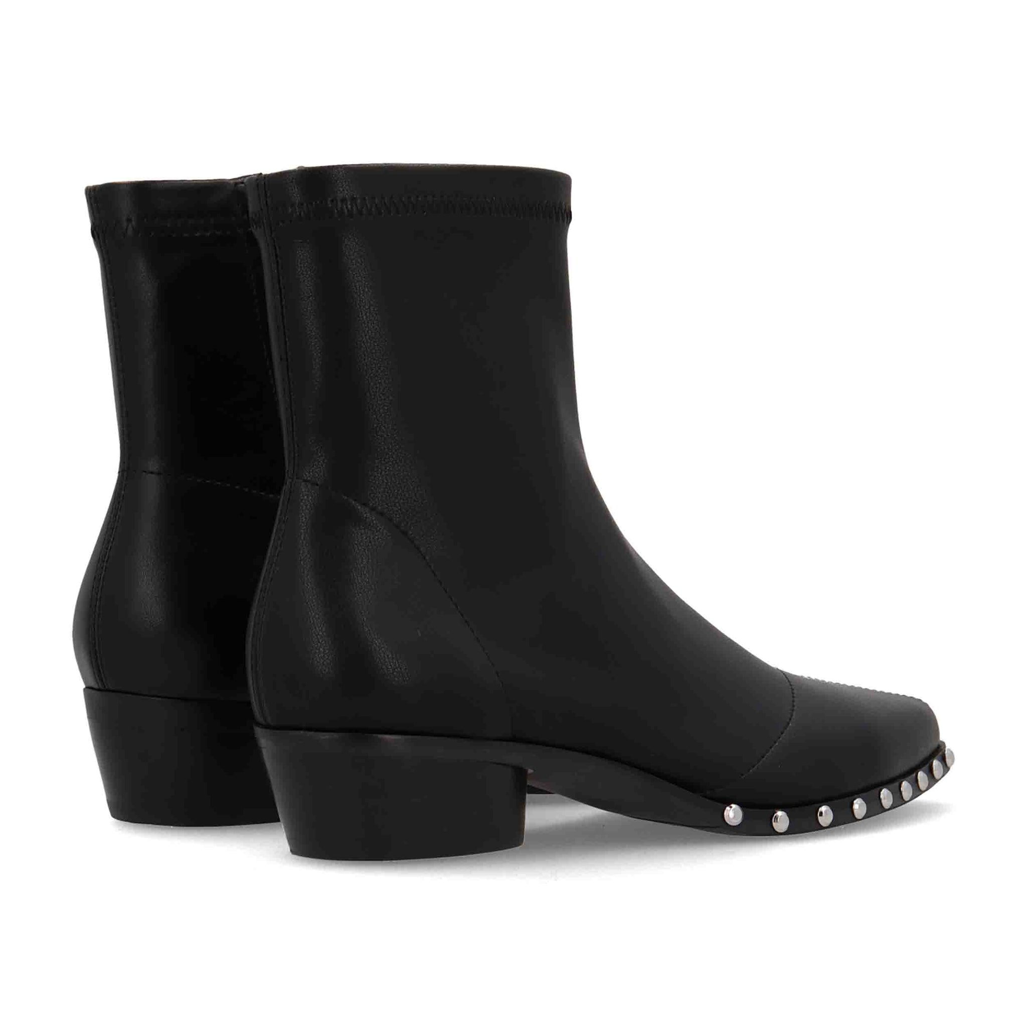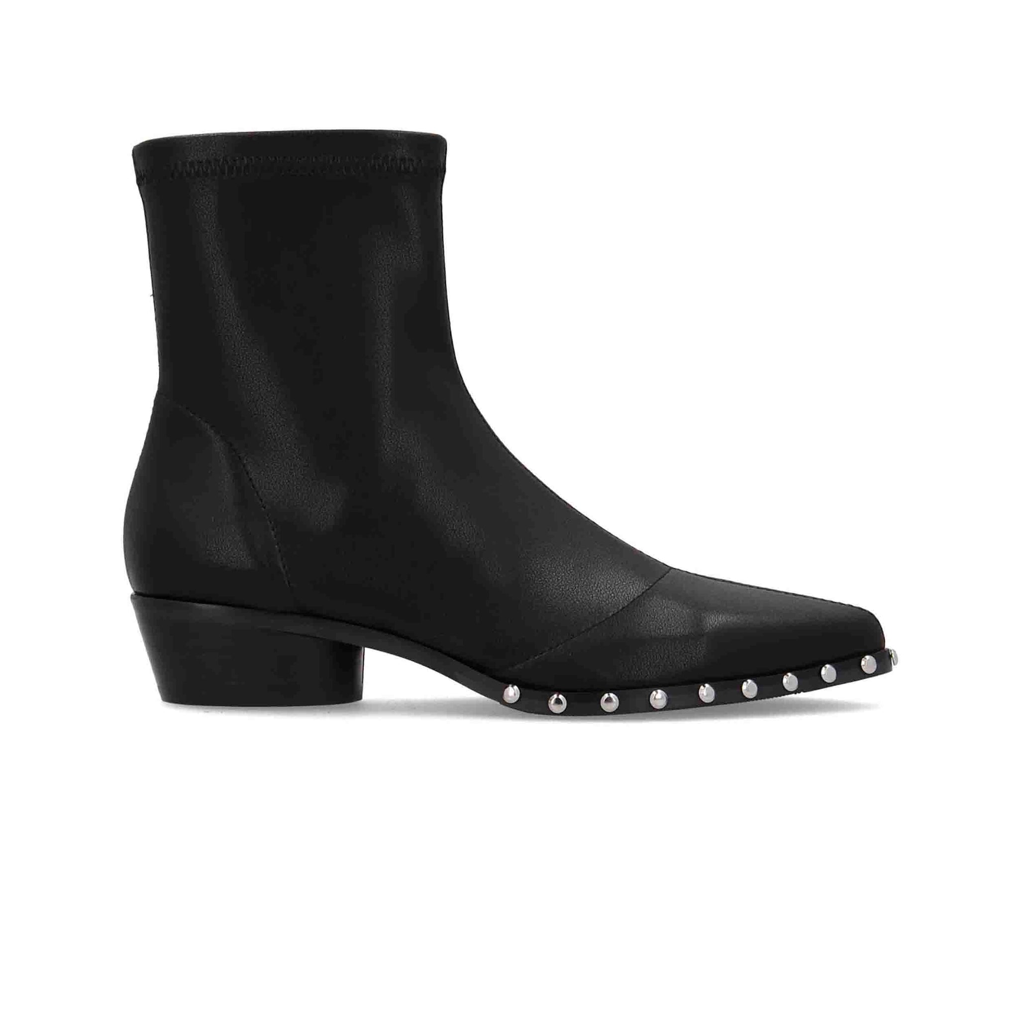 Lil Kansas de Noa Harmon (ref. 9760-0006) es un botín campero pensado para darte carácter y confort cada día. Fabricado en napa vegana de acabado negro, combina una estética rockera con toques sofisticados: tachas metálicas estratégicamente colocadas que aportan personalidad sin sobrecargar el diseño.