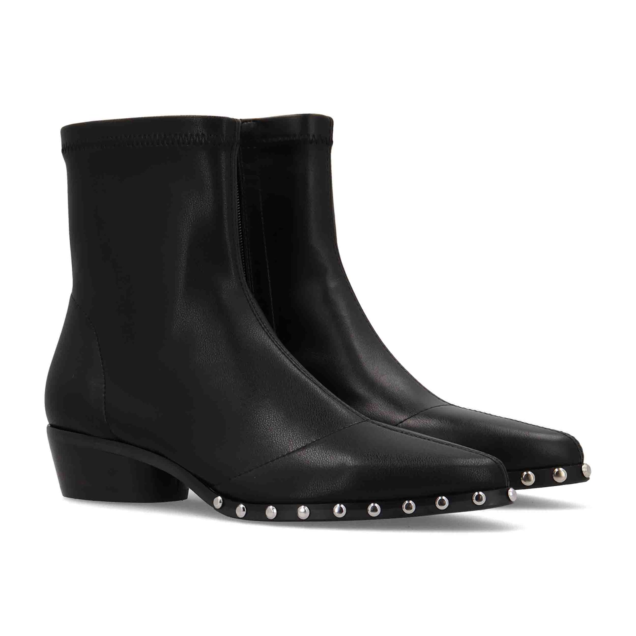La silueta es ankle-boot con puntera ligeramente afilada que estiliza la pierna; la cremallera lateral facilita ponértelo y quitártelo con rapidez, manteniendo al mismo tiempo un ajuste seguro. El tacón es reducido (aprox. 3,5 cm), suficiente para estilizar la figura sin renunciar a la estabilidad y el confort durante jornadas largas.