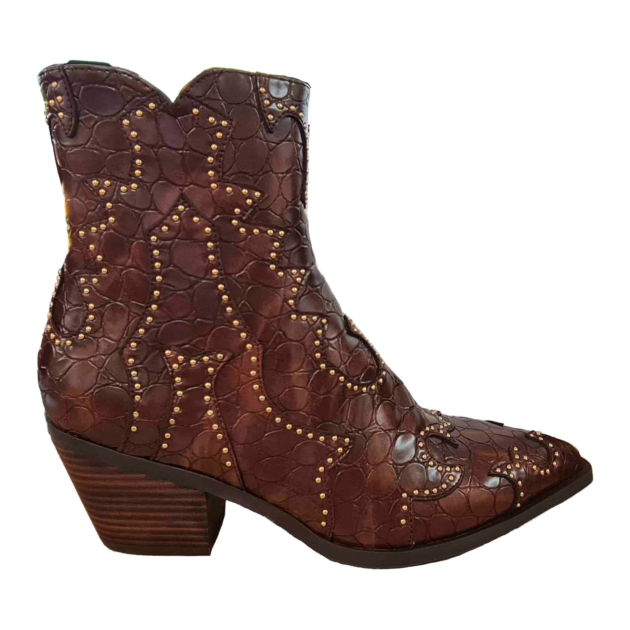 Por su construcción, el Miranda combina bien con jeans cropped, vestidos fluidos o faldas midi para contrastar texturas; su estética cowboy aporta un punto de tendencia cuando lo llevas con prendas neutras. Cuídalo limpiando la superficie con un paño húmedo y evitando secadores para mantener tono y detalles metálicos.
