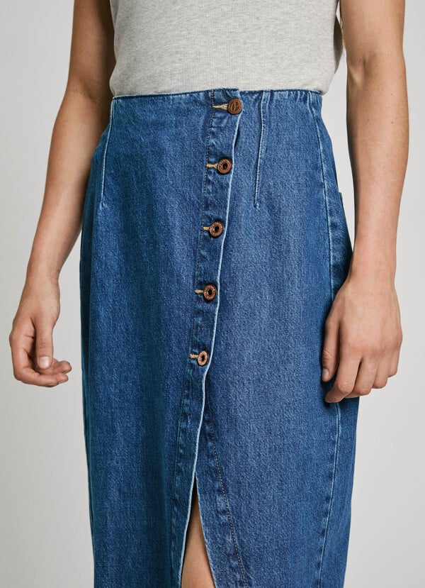 Si buscas una falda que combine estilo atemporal, comodidad y un diseño responsable, la Midi Skirt es la prenda esencial para renovar tu armario con un toque de Pepe Jeans.