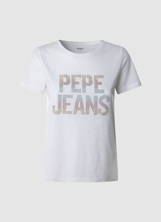 Pepe Jeans Victoria Camiseta Logo Strass Mujer blanco