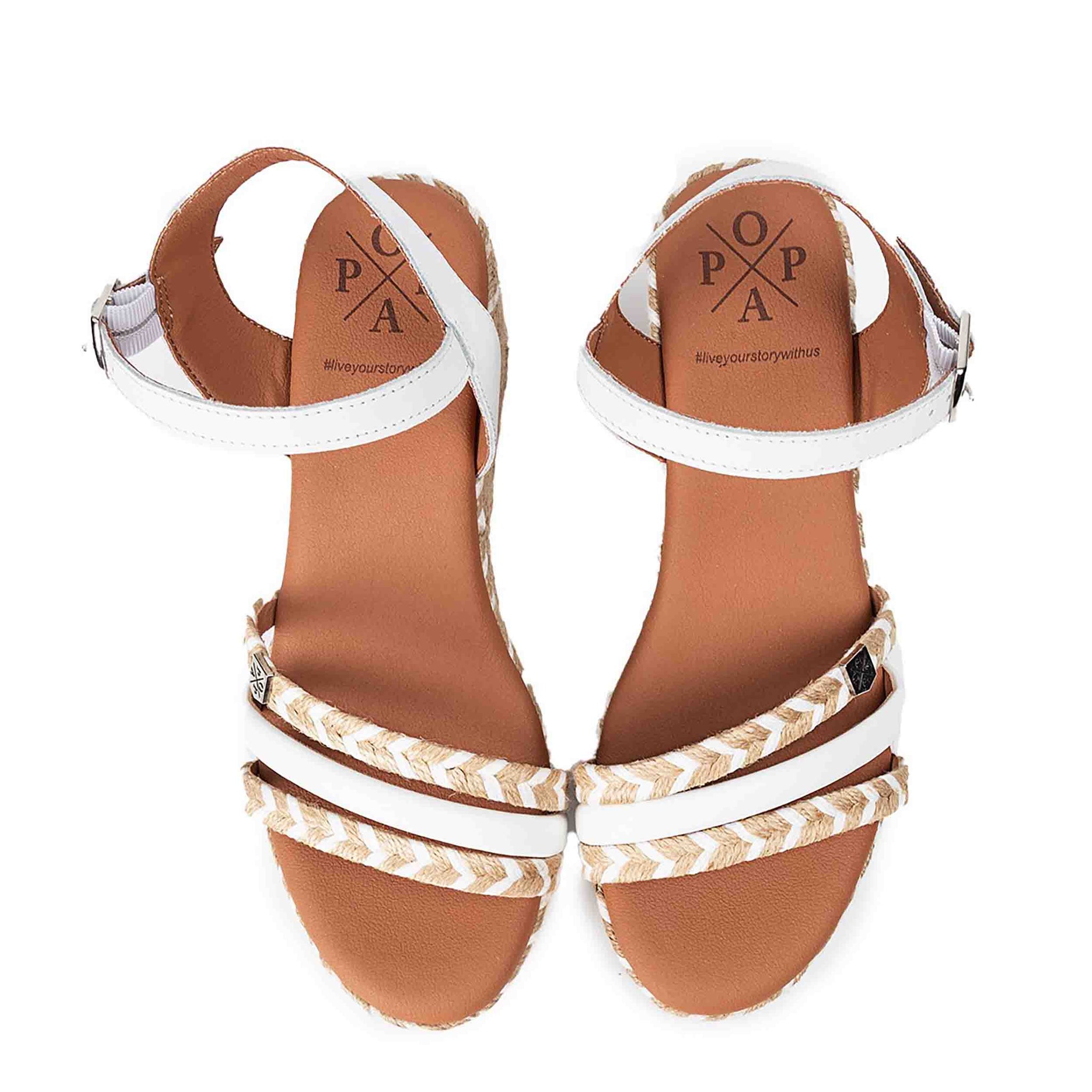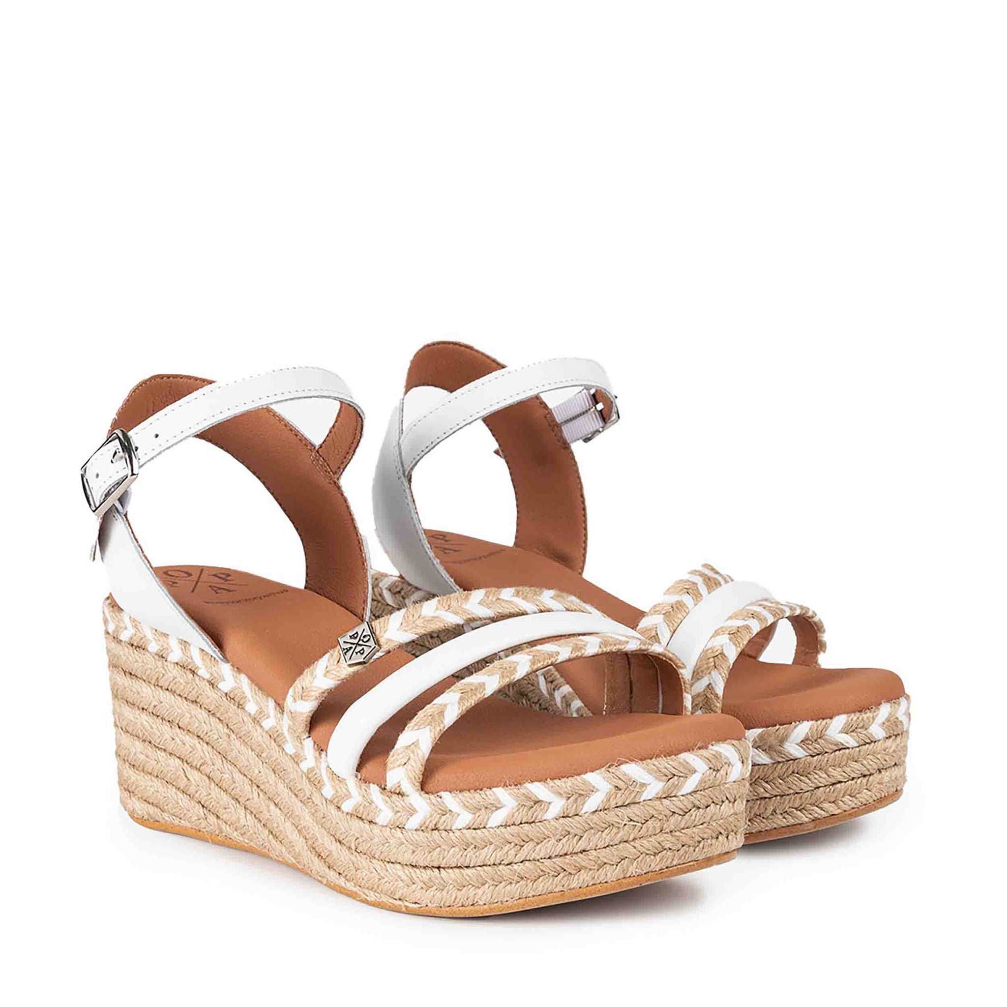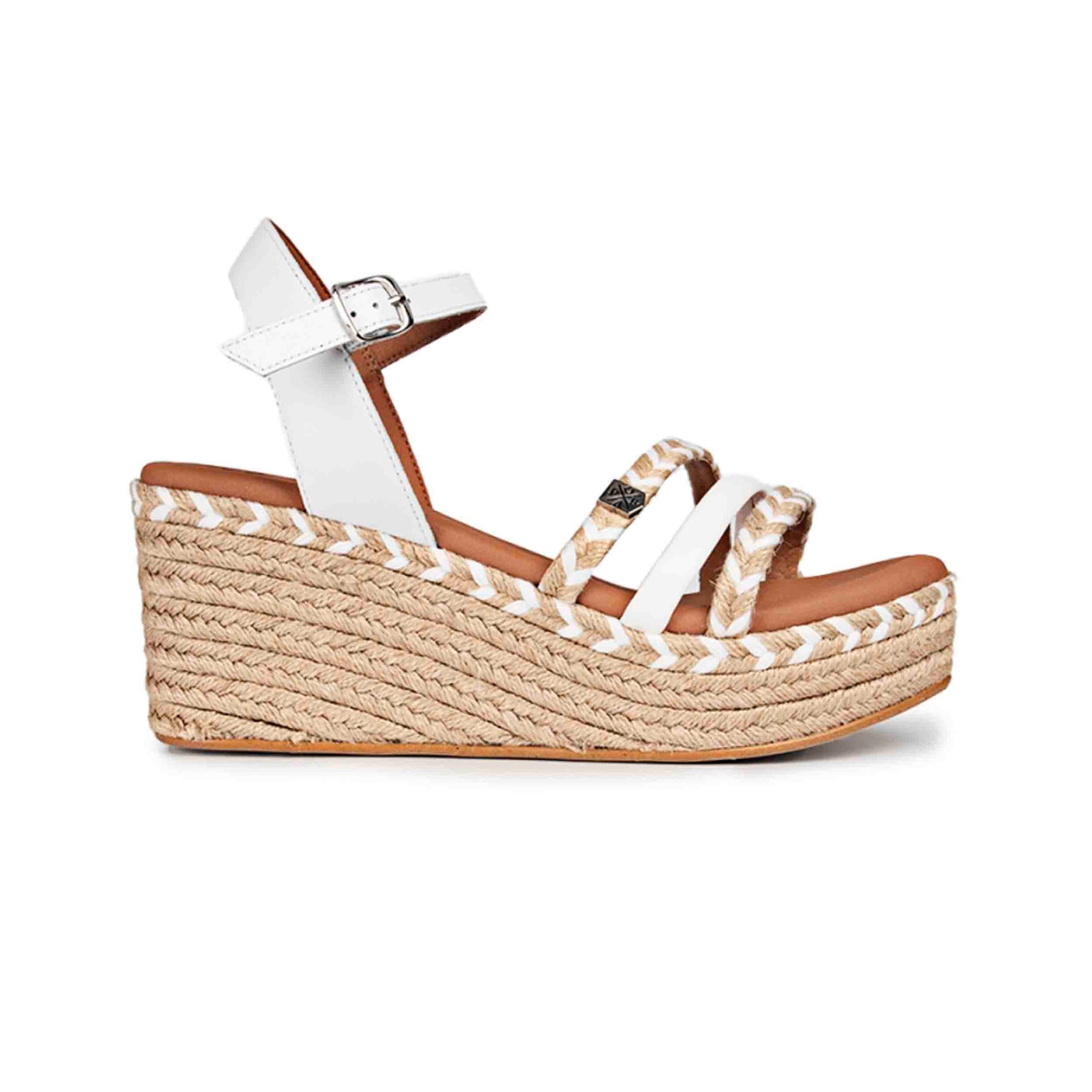 Diseño de cuña con detalle de cuerda: Estas sandalias presentan una elegante cuña adornada con detalles de cuerda trenzada, que añade un toque rústico y veraniego al diseño. La altura de la cuña proporciona una elevación sutil que estiliza la figura sin comprometer la comodidad.