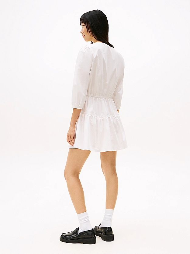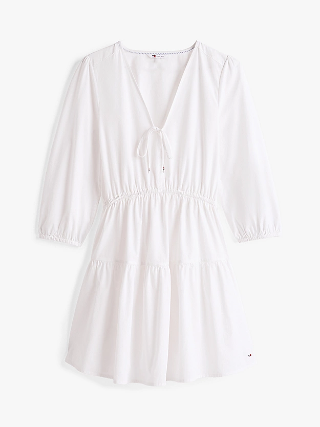 En color ecru, este vestido es fácil de combinar con diferentes accesorios y calzado, y se adapta tanto a un look casual como a uno más sofisticado. Perfecto para el día a día, el vestido corto y amplio de popelín Tommy Hilfiger es una opción imprescindible para cualquier mujer moderna.
