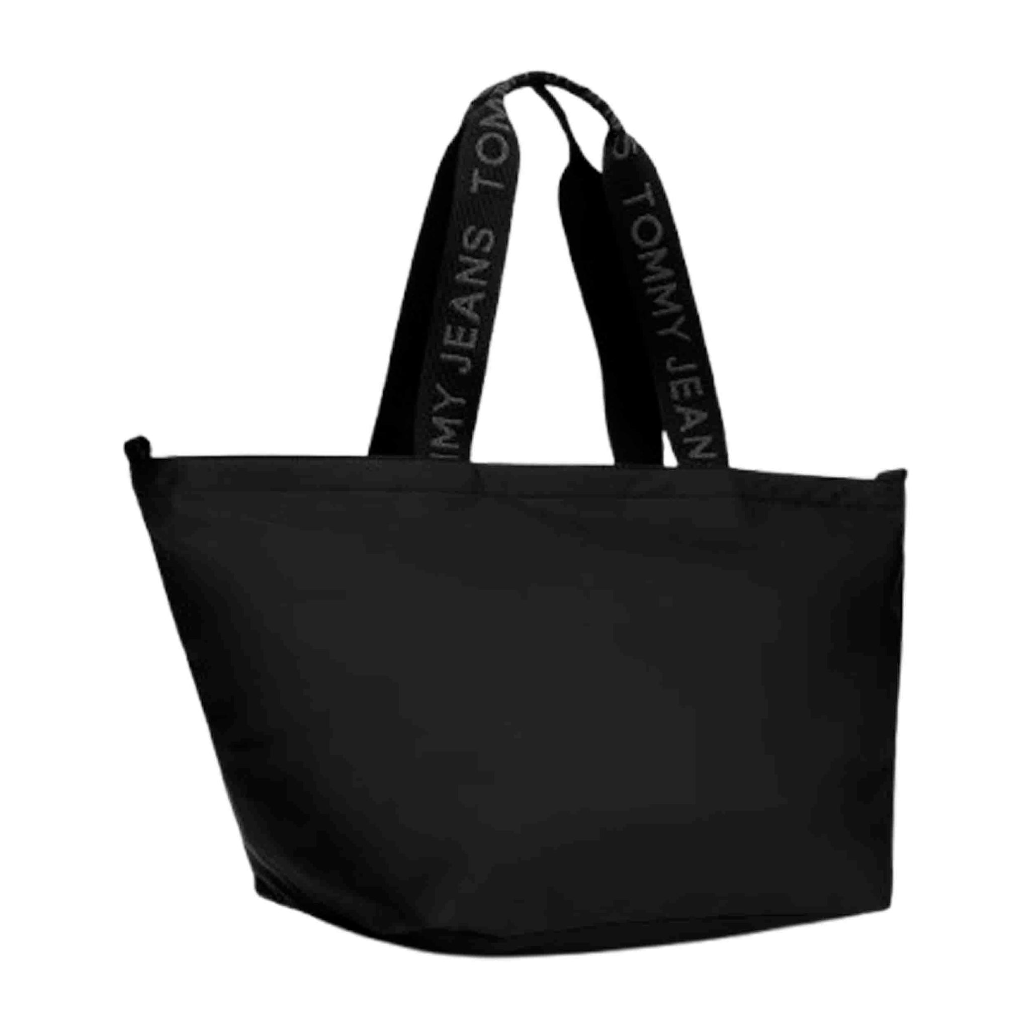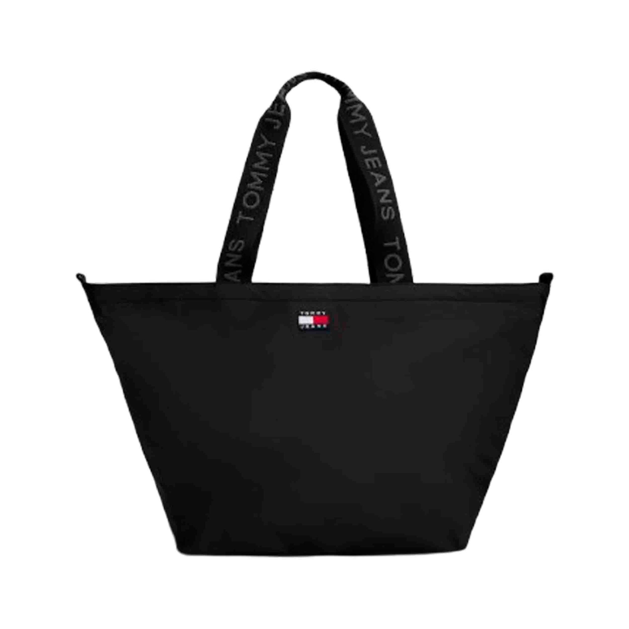 El Essential Daily Tote de Tommy Jeans en color negro es el bolso perfecto si buscas funcionalidad, estilo y resistencia en una sola pieza. Fabricado en 100% poliéster, destaca por su estructura ligera pero firme, ideal para acompañarte en tu rutina diaria. Su diseño amplio ofrece el espacio suficiente para llevar todo lo que necesitas: desde tu portátil hasta tus objetos personales o accesorios del día a día.