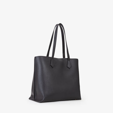 Este bolso estructurado con forma tote, destaca por su diseño sofisticado, líneas limpias y capacidad optimizada para llevar lo esencial sin comprometer elegancia. Las asas dobles permiten llevarlo en mano o al hombro, mientras que su correa ajustable con logo grabado en PU añade un punto moderno y versátil.