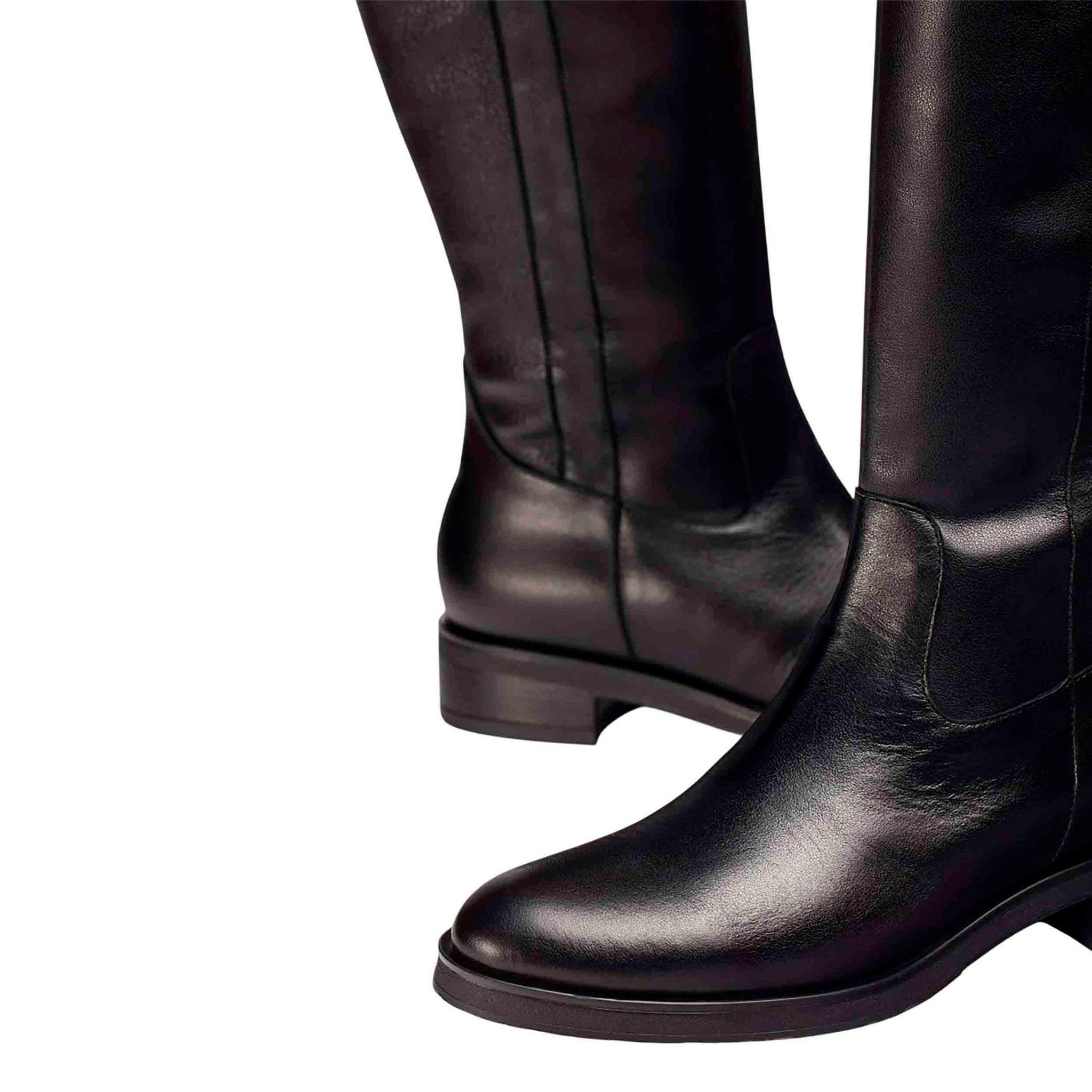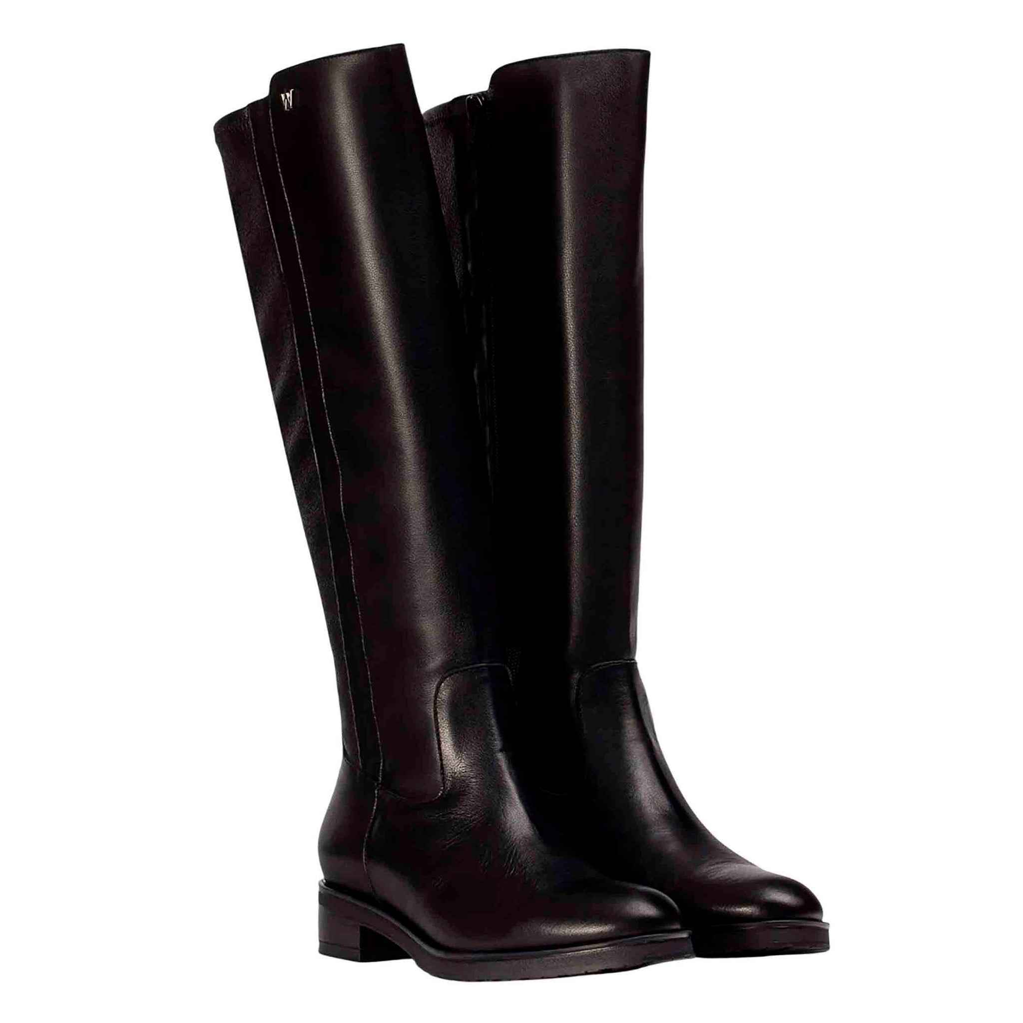 Codigree 00 de Wonders referencia C 54100 en color negro representa una bota de diseño elegante con carácter atemporal. Exterior íntegramente en piel negra de alta calidad aporta un acabado liso, resistente y con presencia sobria. Interior que combina piel vacuna (70 %) y lycra (30 %) envuelve tu pierna con suavidad y adaptabilidad, asegurando calidez sin rigidez. Tacón de 3,5 cm proporciona un realce sutil sin comprometer la estabilidad al caminar.
